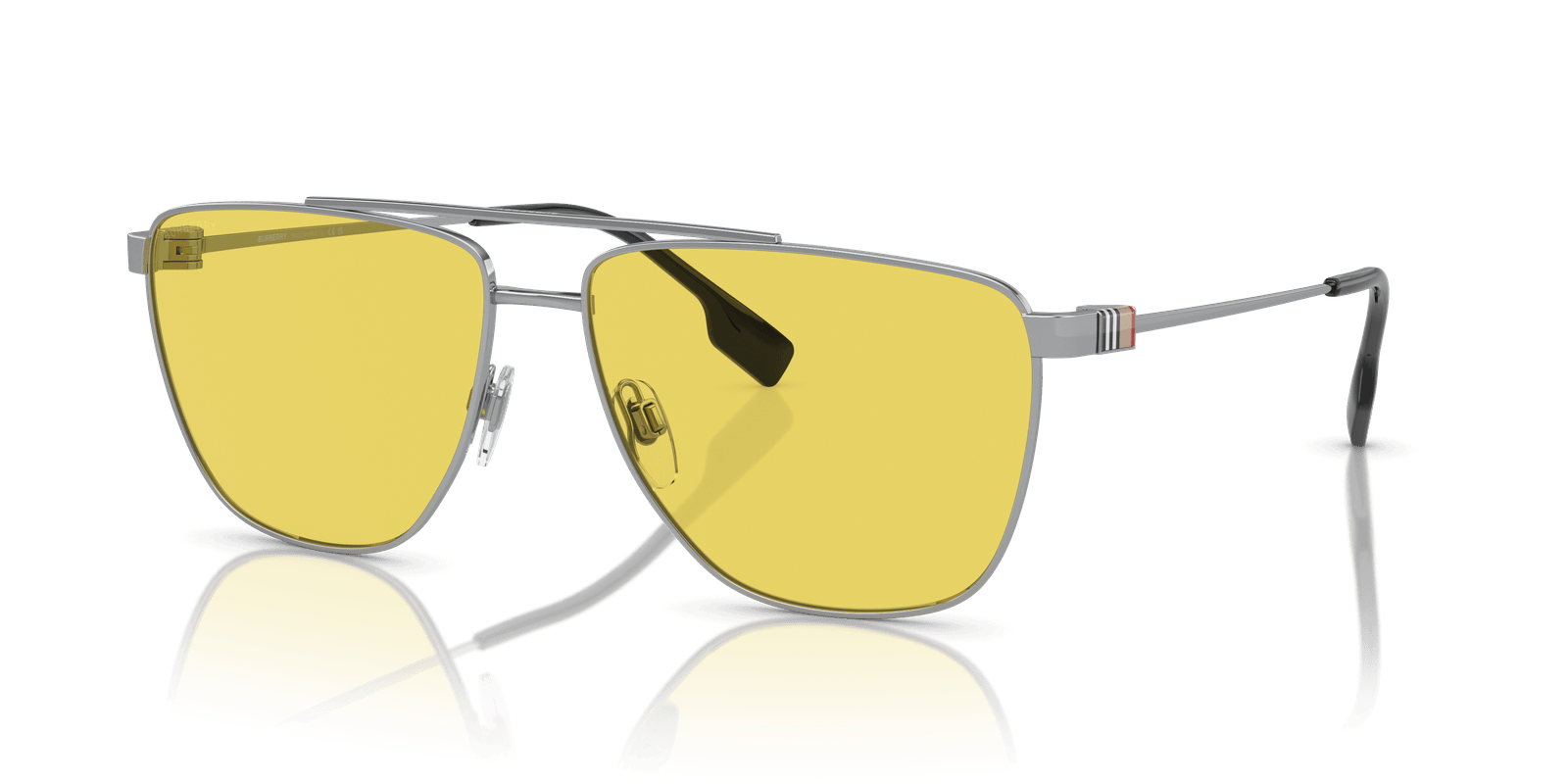 Introducing Burberry Blaine, a sophisticated statement of style. The solid yellow lenses exude youthful energy, while the metal pilot frame in silver color adds an air of elegance to this design. Crafted from high-quality metal material, these sunglasses offer both comfort and durability for all-day wearability. Elevate your everyday look with these timeless shades that effortlessly blend modern flair with timeless sophistication.