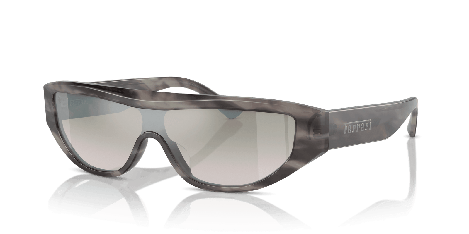Presenting the Ferrari FH2004U, a new pinnacle in design. These unisex shades boast a striking striped grey acetate rectangular frame with gradient green mirror lenses, adding an extra touch of sophistication to your look. The integrated temples, featuring the iconic Ferrari shield emblem and red stripe, beautifully complement the sleek rectangle shape. Additionally, the metallic silver front exudes luxury and style. Engineered with precision for optimal fit and comfort, these sunglasses are perfect for those who seek timeless elegance paired with high-performance materials and cutting-edge technology.