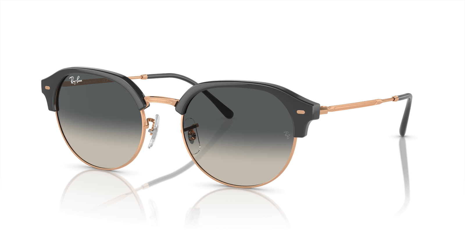 Ray-Ban RB4429 sunglasses are an irregular frame shape that boasts a unique and modern design. These shades, with their dark grey on rose gold frames, will add an extra dimension to your look and attitude. The gradient grey lenses give these sunglasses a trendy touch while maintaining the timeless appeal of Ray-Ban style.